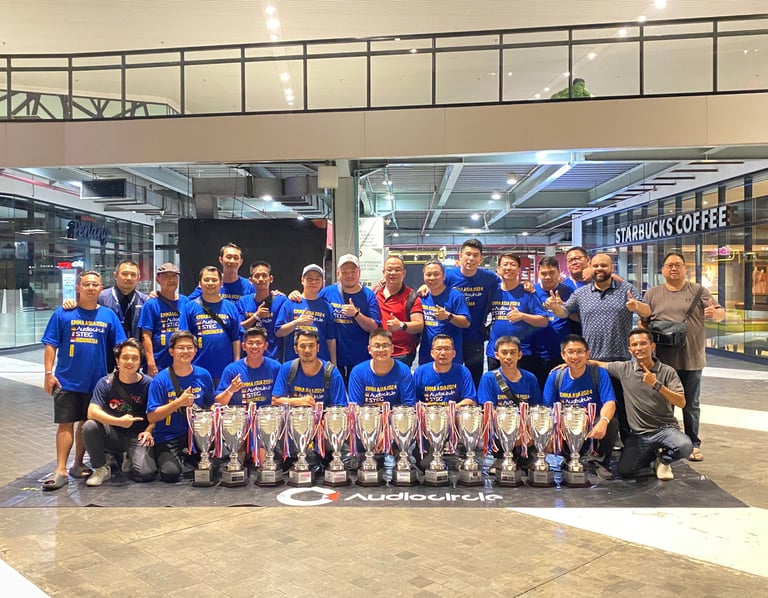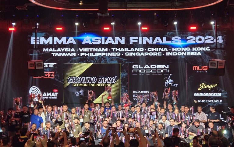 Jakarta, November 28, 2024 – The Audio Circle and Steg team once again proved their dominance by clinching 13 trophies at the prestigious EMMA Asia Final 2024, held in Jakarta on November 27–28. Competing against elite teams from across Asia, the Indonesian squad showcased exceptional skill in sound tuning, system installation, and competition strategy.